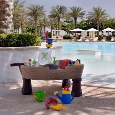 Babysitting jusqu’à 12 heures, jeux, jouets, maquillage et activités aquatiques intégrés dans le flux.